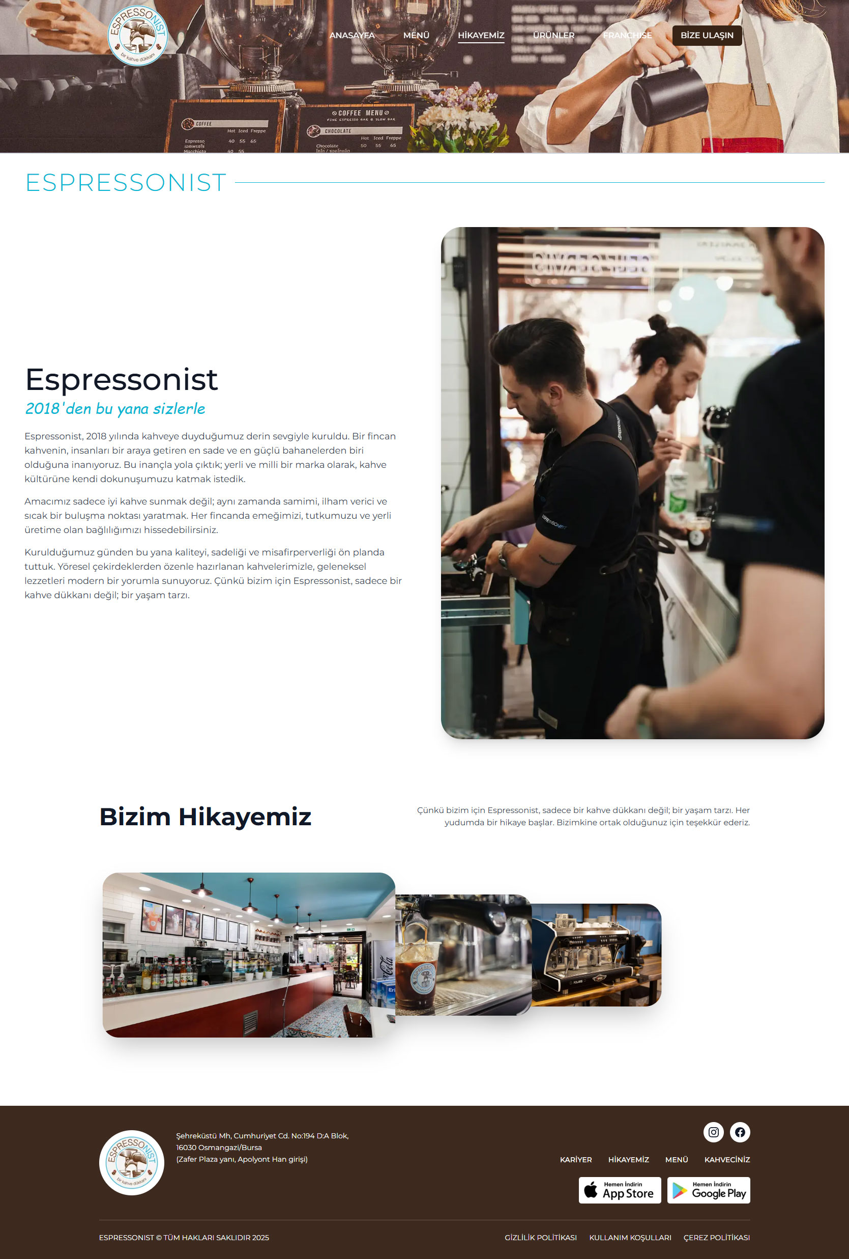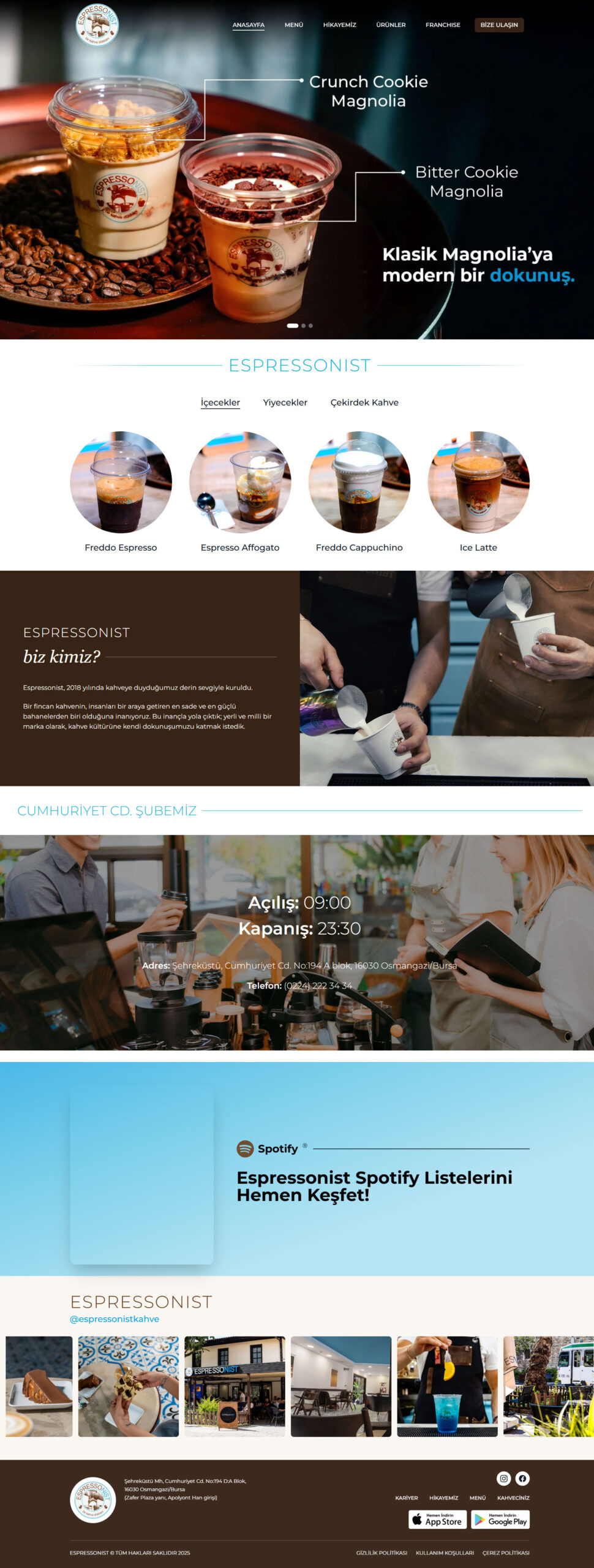 Web Sitesi Tasarımı Espressonist Site Tasarımı Aralık 21, 2025 Bursa’da kahve diyince akla gelen markalardan biri olan Espressonist için yaptığım site tasarımı; espressonist.com